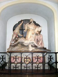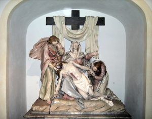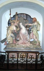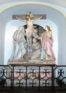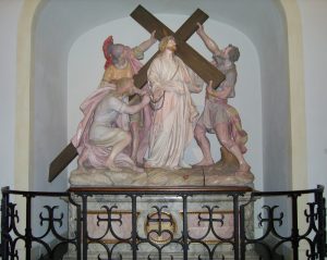 Die Kongregation hatte durch Kaiser Ferdinand II. für das gesamte Römische Reich Deutscher Nation seit dem Jahr 1628 das Privileg in ihrer Druckerei die ,,Monatspatrone“ zu zu drucken und zu verbreiten. Diese Druckerei befand sich ebenerdig unter dem Bürgersaal (Betsaal). Der Druck der ,,Monatspatrone“ war seit Beginn des 19. Jahrhunderts eingestellt. In diesem Raum wurde der Unbefleckten Jungfrau eine Kapelle eingerichtet. Dies war der Anfang der ,,Unterkirche“. In den Jahren 1892 bis 1898 wurde dort ein Kreuzweg aufgestellt. Josef Elsner hat die Figuren modelliert, die von Hans Sprenger in Lindenholz ausgearbeitet wurden. Jede Kreuzwegstation hat vier Figuren und jede dieser Figuren ist 1,20 m hoch. Der Kreuzweg stellt in neobarocker Empfindung den Leidensweg des Herrn dar. Am 26. Mai 1898 weihte der damalige Erzbischof von München-Freising, Franz Josef von Stein den Kreuzweg.