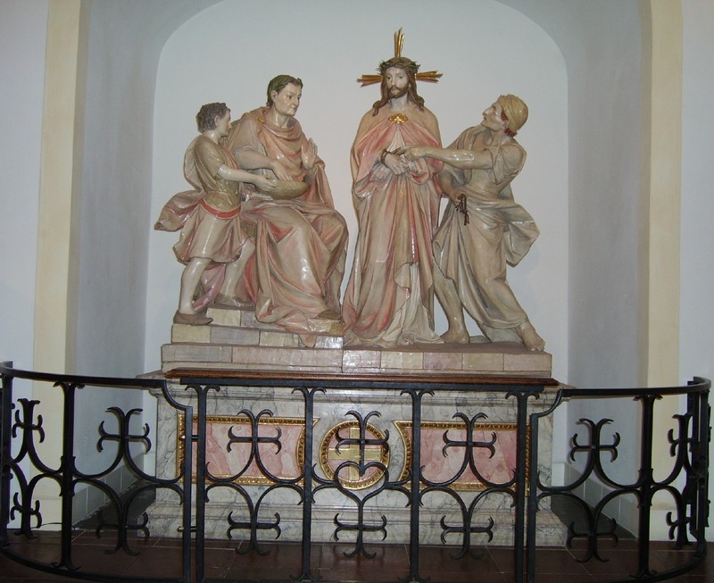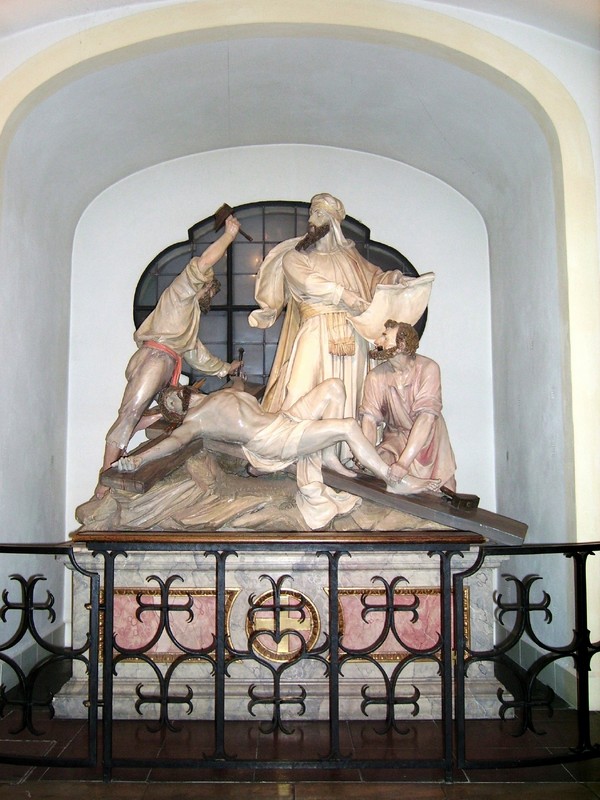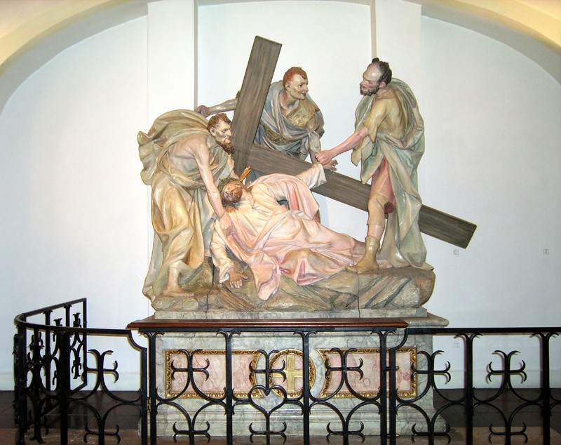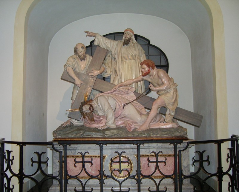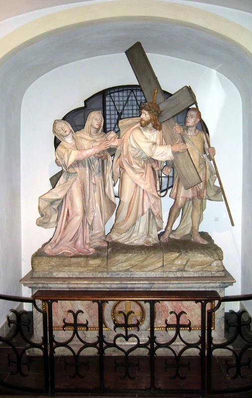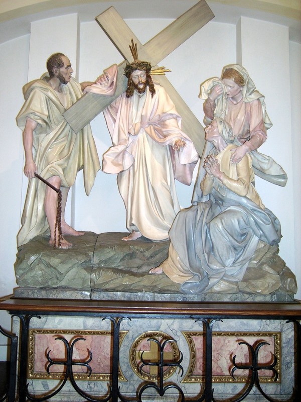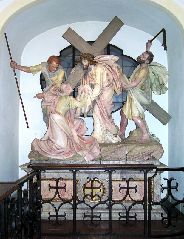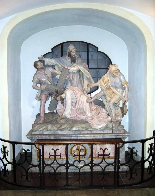 Die Kongregation hatte durch Kaiser Ferdinand II. für das gesamte Römische Reich Deutscher Nation seit dem Jahr 1628 das Privileg in ihrer Druckerei die ,,Monatspatrone“ zu zu drucken und zu verbreiten. Diese Druckerei befand sich ebenerdig unter dem Bürgersaal (Betsaal). Der Druck der ,,Monatspatrone“ war seit Beginn des 19. Jahrhunderts eingestellt. In diesem Raum wurde der Unbefleckten Jungfrau eine Kapelle eingerichtet. Dies war der Anfang der ,,Unterkirche“. In den Jahren 1892 bis 1898 wurde dort ein Kreuzweg aufgestellt. Josef Elsner hat die Figuren modelliert, die von Hans Sprenger in Lindenholz ausgearbeitet wurden. Jede Kreuzwegstation hat vier Figuren und jede dieser Figuren ist 1,20 m hoch. Der Kreuzweg stellt in neobarocker Empfindung den Leidensweg des Herrn dar. Am 26. Mai 1898 weihte der damalige Erzbischof von München-Freising, Franz Josef von Stein den Kreuzweg.